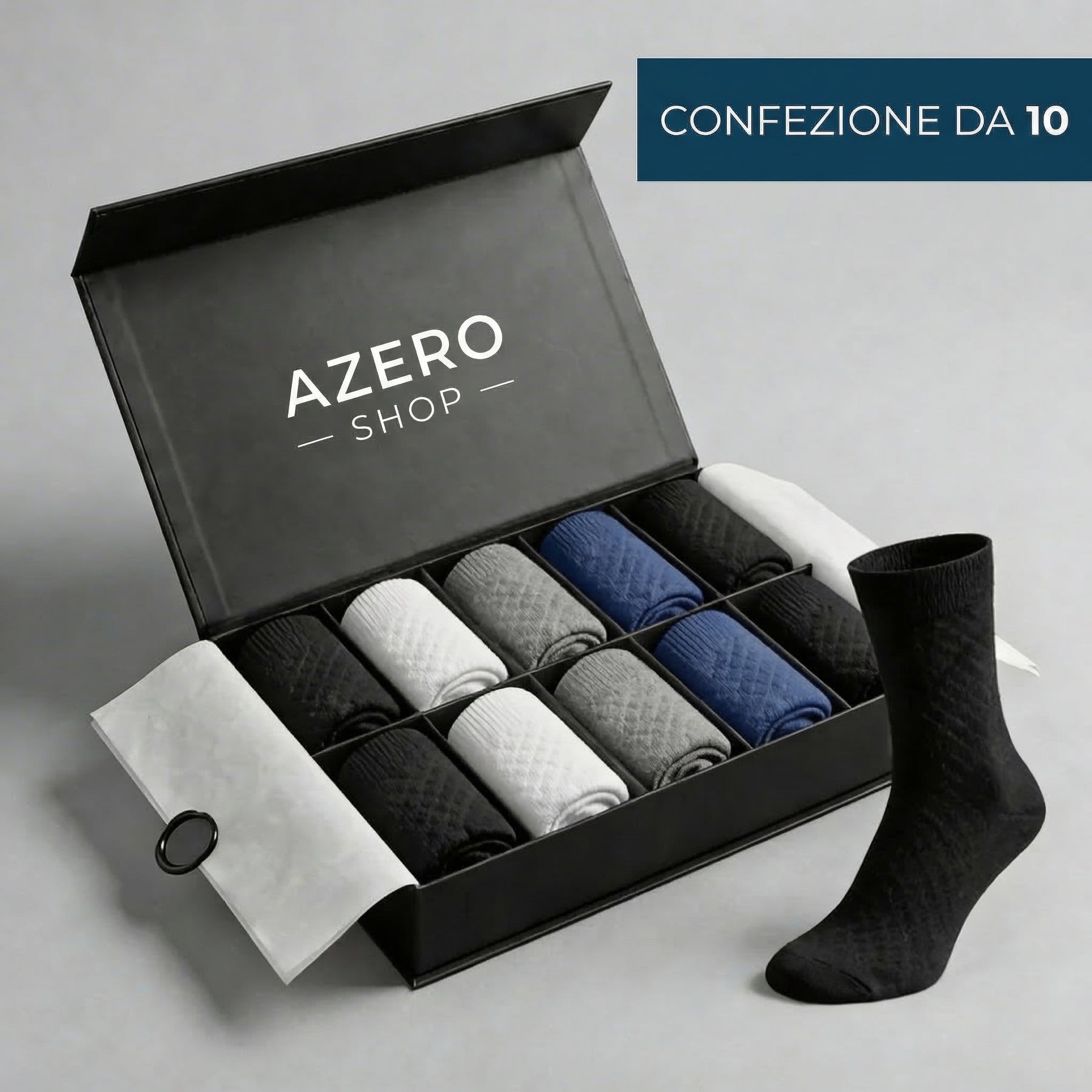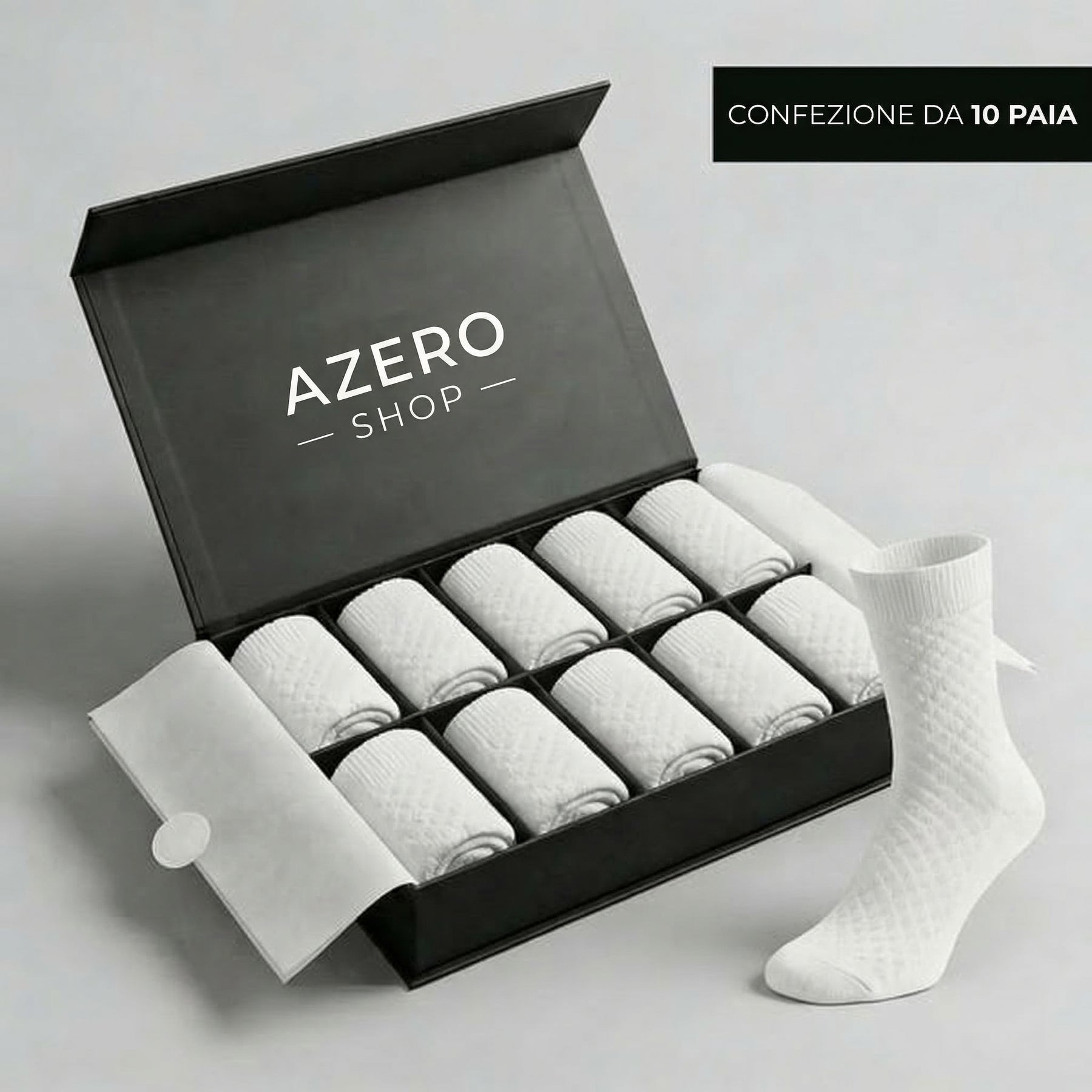 I calzini AZERO offrono una tenuta confortevole, senza compressione eccessiva, rimanendo ben al loro posto per tutto il giorno.