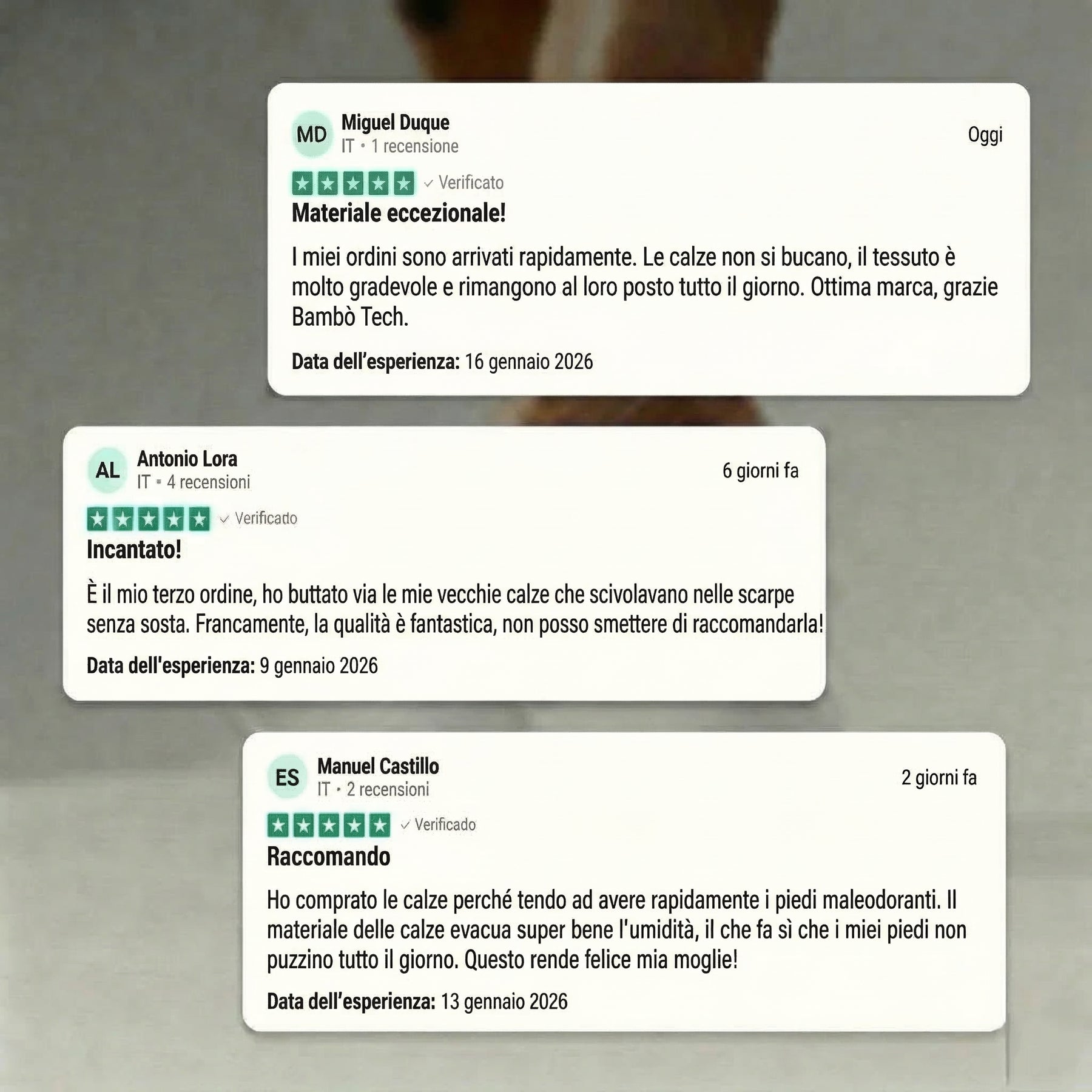 Ana B."La mia pelle è molto delicata e questi calzini non mi danno alcun fastidio. Un vero successo."