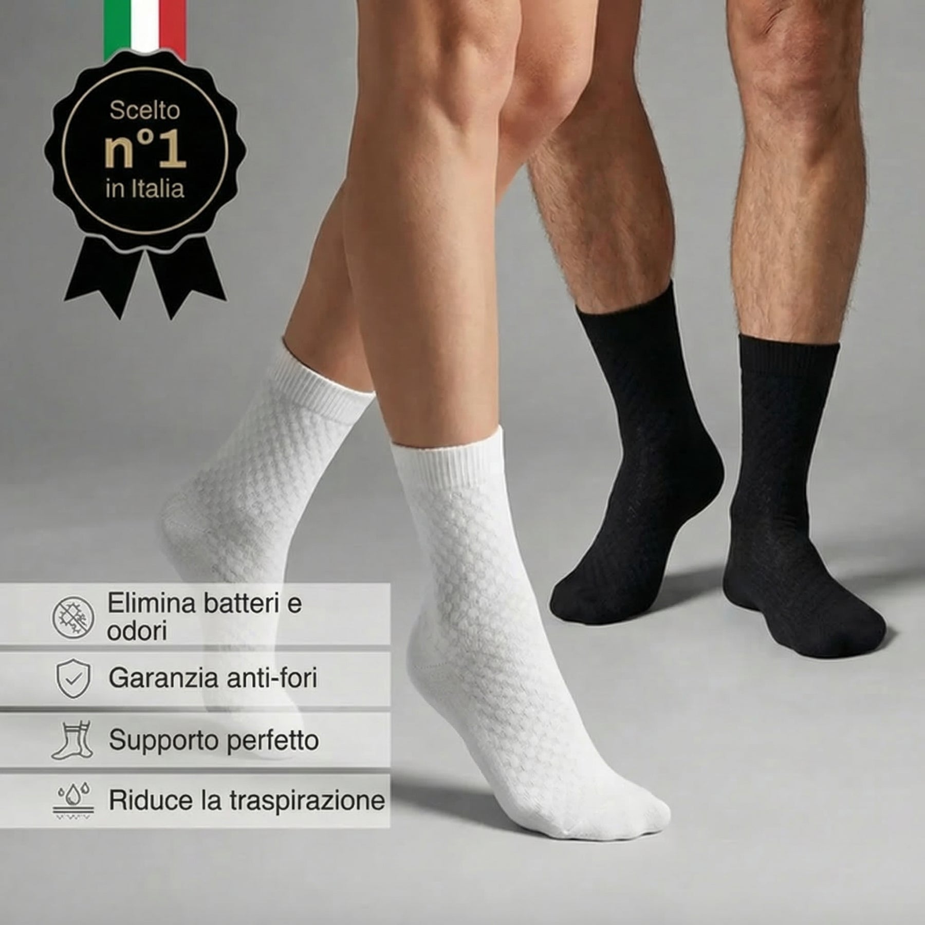 La soluzione è nella natura: grazie alle proprietà traspiranti e antibatteriche del bambù, questi calzini regolano il clima del tuo piede. Dimentica l’umidità: godrai di una sensazione di asciutto e comfort totale dal mattino fino alla sera.