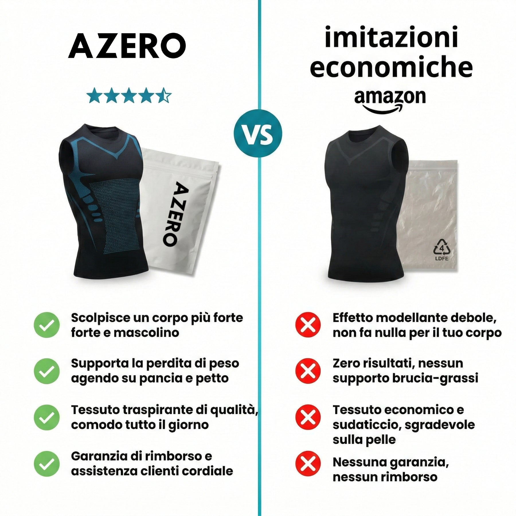 Nessun problema. Se la vestibilità non è perfetta, contattaci semplicemente a support@azeroshop.com e ti aiuteremo con la sostituzione.